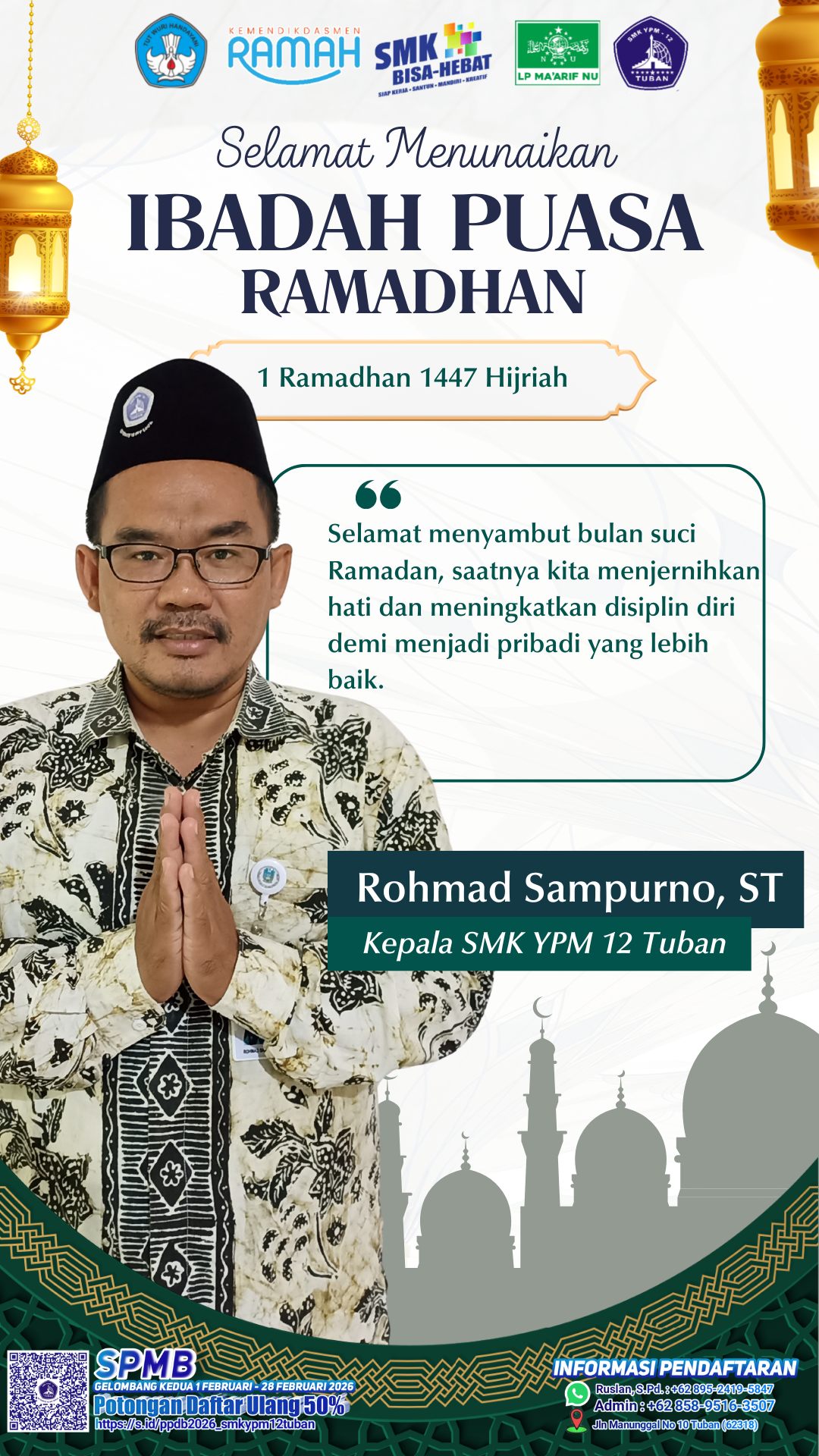 Keluarga Besar SMK YPM 12 Tuban mengucapkan "Selamat Menunaikan Ibadah Puasa 1447 H"